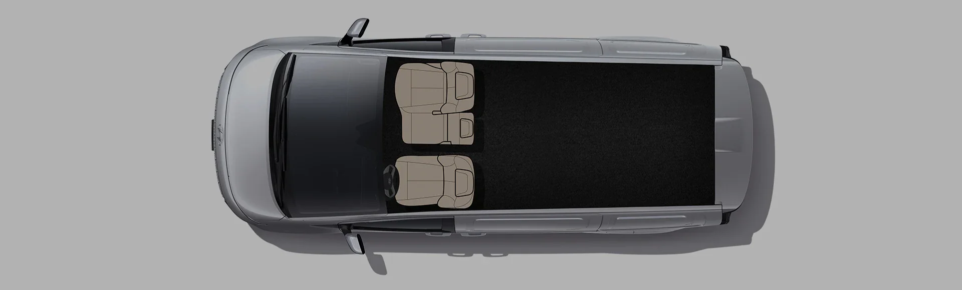 Керемет кең және жылдам тиеу/түсіру үшін қос ашылатын есіктер сияқты қосымша функциялармен жабдықталған STARIA фургоны — бұл сауда-саттықпен айналысатындар үшін және максималды тиімділікті бағалайтын кәсіби тасымалдаушылар үшін тамаша шешім. Жүктерді тасымалдауға арналған ұзындығы 2,5 м кеңістікке ие бола отырып, 3 орынды модель әрқашан одан да көп тауарларды орналастыруға дайын. Сіз орындықтардың саны мен орналасуын таңдау арқылы керемет көмекшіге ие бола аласыз.