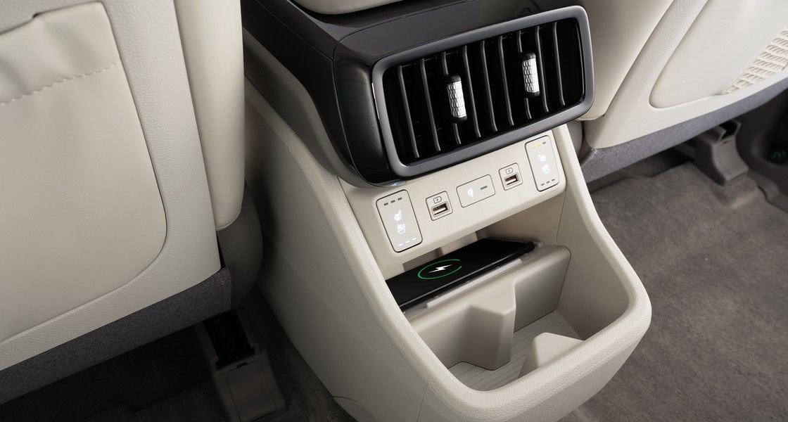 Алдыңғы және артқы жолаушыларға арналған сымсыз зарядтау құрылғылары.